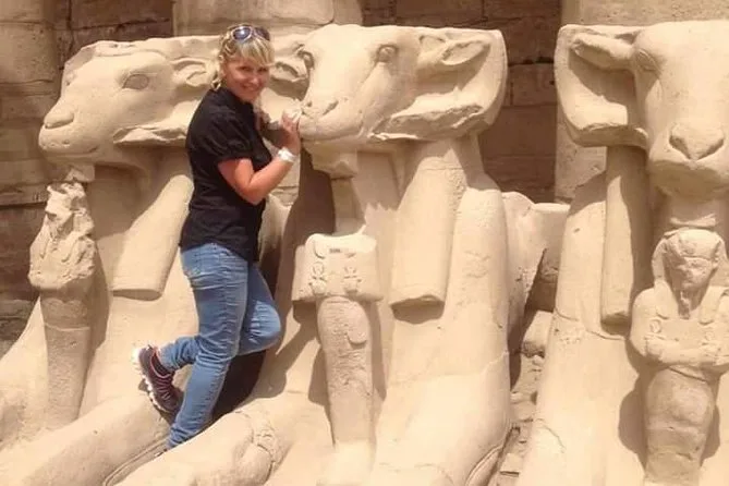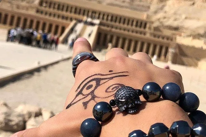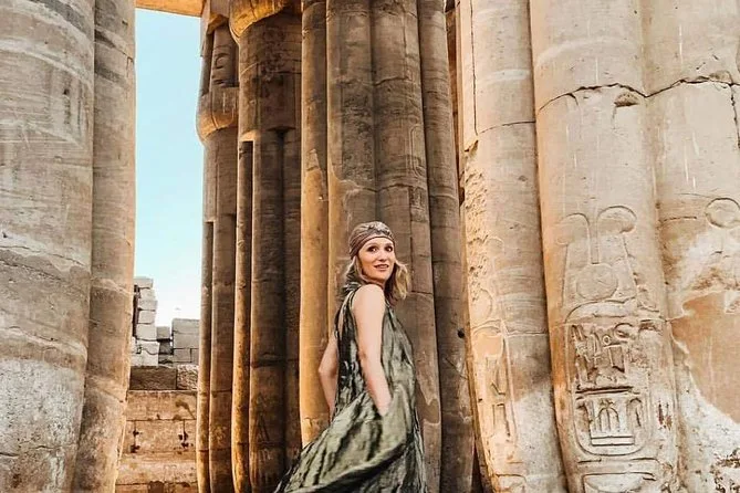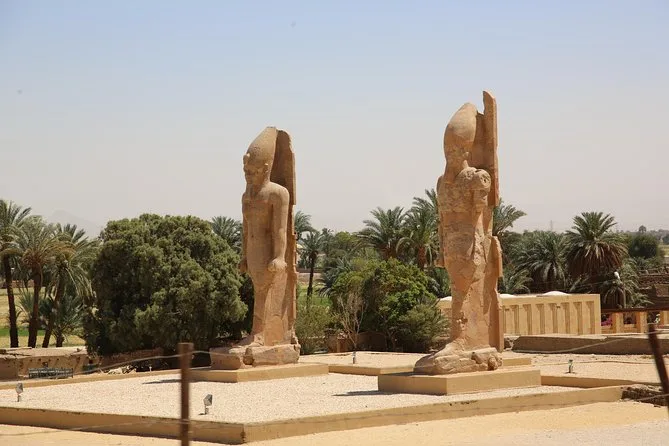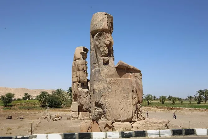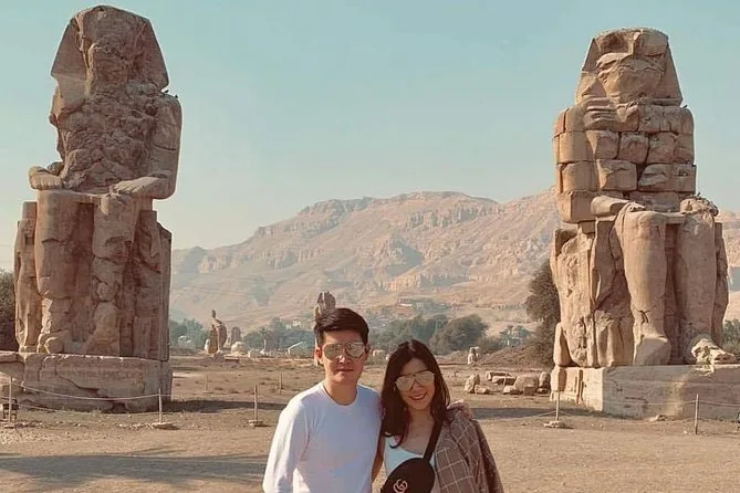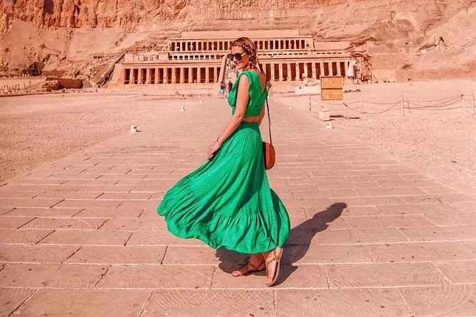 Tu día incluye recogida y regreso al hotel en un vehículo con aire acondicionado, visitas guiadas al Templo de Karnak, al Templo de Hatshepsut y a los Colosos de Memnón, además de un delicioso almuerzo egipcio durante el recorrido. ¡Todas las edades y niveles de condición física son bienvenidos!