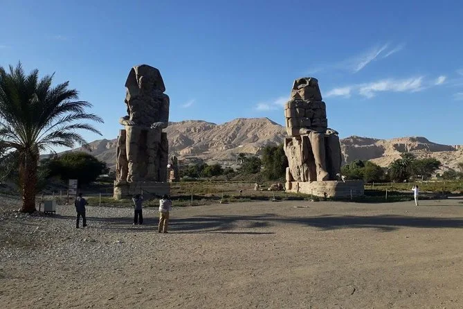 De regreso, paramos en los Colosos de Memnón: dos estatuas gigantes que parecen vigilar los campos donde los agricultores aún trabajan a mano. Siempre hay alguien cerca vendiendo postales o dátiles, por si quieres un tentempié para el camino. Ya entrada la tarde, regresamos al puerto de Safaga, cansados pero felices de no haber perdido esta experiencia durante nuestra escala.