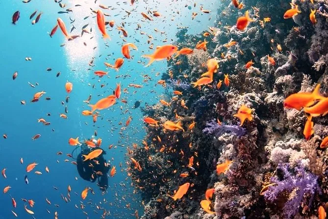 Harás dos inmersiones en el Mar Rojo con un guía privado que se encarga de todo, incluso si no sabes nadar. Disfruta un almuerzo tranquilo entre inmersiones (con opciones veganas), recogida en tu hotel y llévate fotos submarinas gratis. Es una experiencia personal y sin prisas, perfecta para recordar esos momentos de calma bajo el agua.