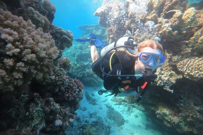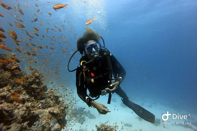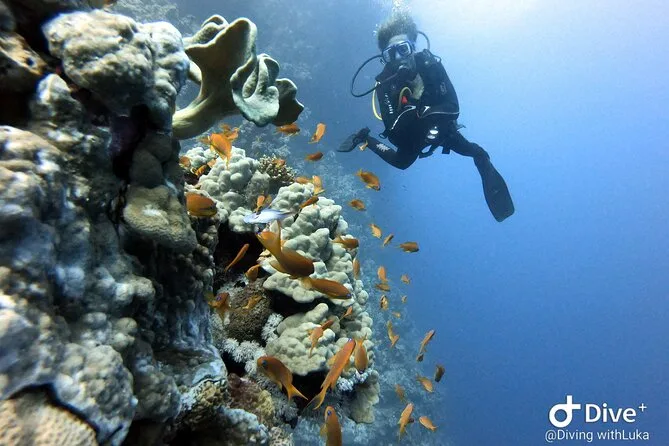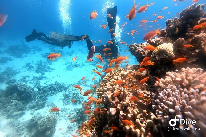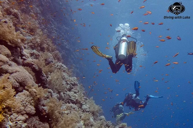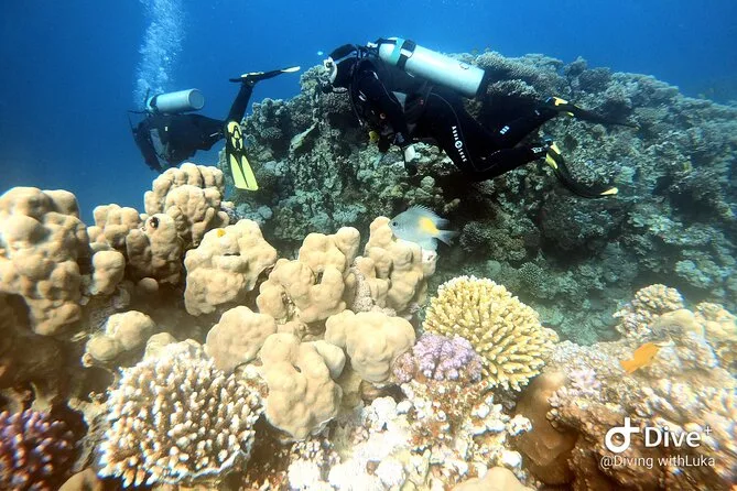Tu día incluye recogida y regreso al hotel, uso completo del equipo de buceo (solo necesitas traer toalla y gafas de sol), dos inmersiones guiadas en diferentes lugares del Mar Rojo con atención personalizada de Luka, un almuerzo abundante con opciones veganas y vegetarianas entre inmersiones, todos los impuestos y tasas incluidos, y fotos submarinas gratis para que guardes el recuerdo.