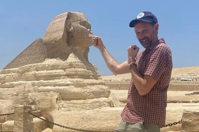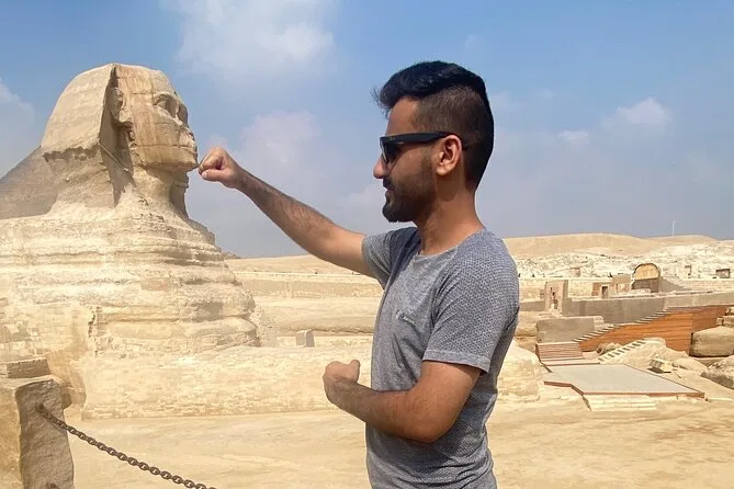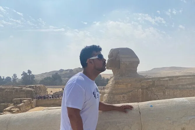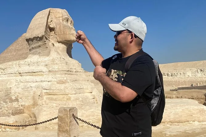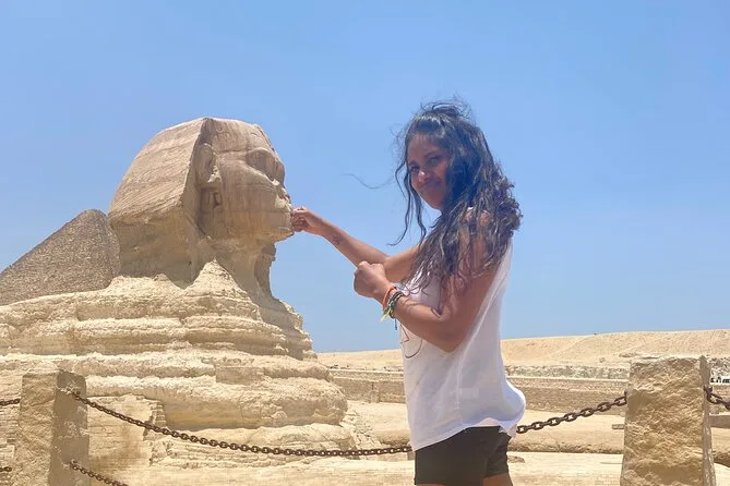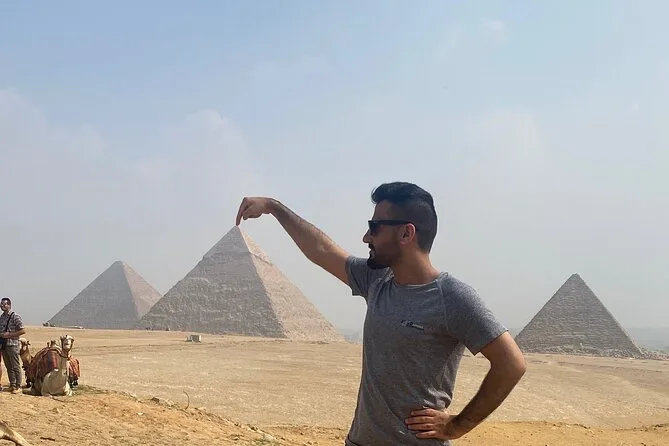 Camina entre las enormes pirámides de Giza con un guía egiptólogo, conoce la Esfinge de cerca, monta en camello junto a piedras milenarias, explora la pirámide escalonada de Saqqara por dentro y disfruta de un almuerzo típico antes de pasear por el museo al aire libre de Memphis. Risas, historias reales y momentos que recordarás mucho tiempo.