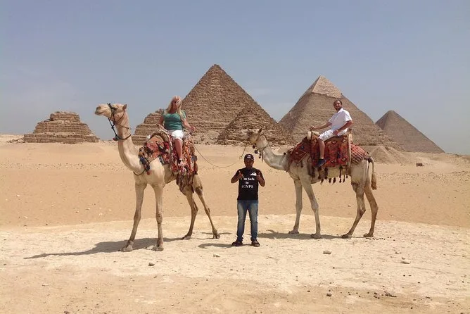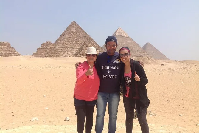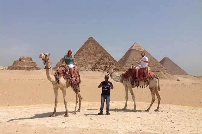 Visitarás las Pirámides de Giza (Jufu, Jafra, Menkaura), la Esfinge, la ciudad antigua de Memphis con la estatua de Ramsés II y la Pirámide Escalonada de Sakkara.