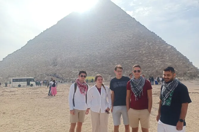 Visitarás las tres pirámides principales de Giza: Keops (Jufu), Kefrén (Jafra) y Micerinos (Menkaura).