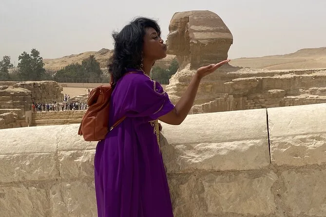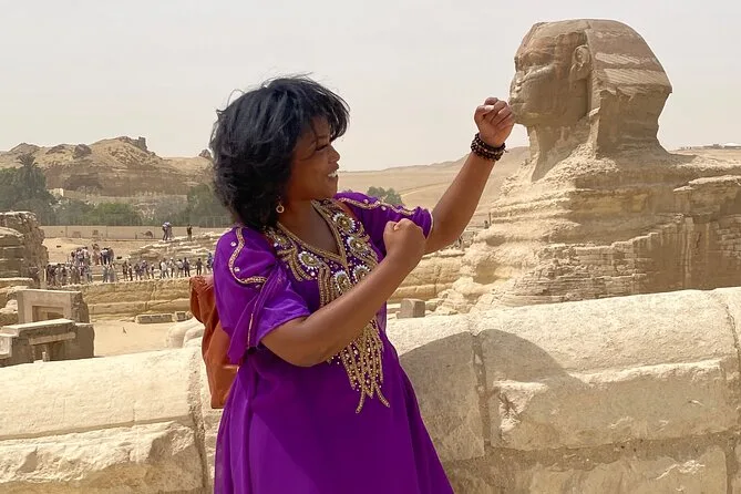 Entrarás a la Gran Pirámide con un guía egiptólogo, explorarás tumbas antiguas con jeroglíficos coloridos, tomarás fotos junto a la Esfinge y disfrutarás un almuerzo sencillo cerca del desierto de Giza. Prepárate para manos polvorientas, historias nuevas y una sensación de asombro que te acompañará mucho después de irte.