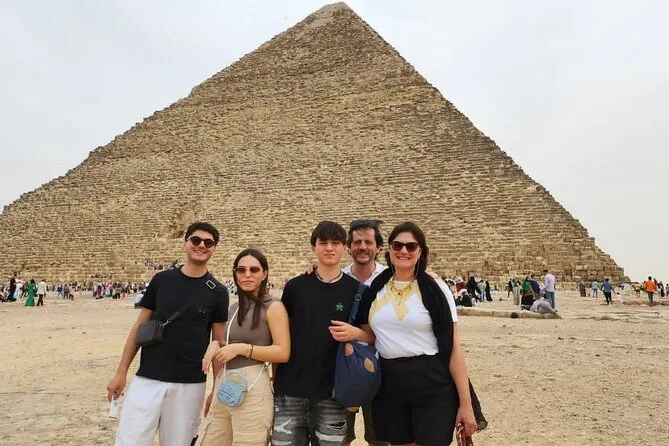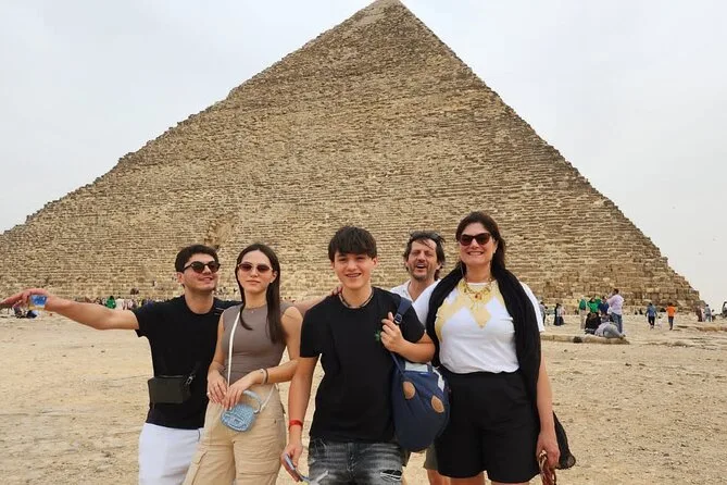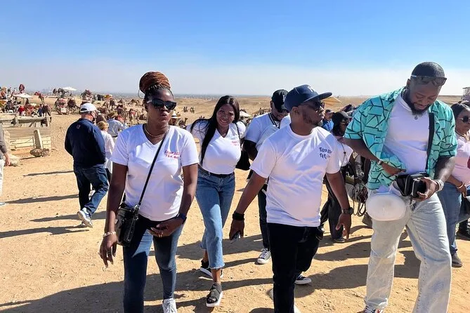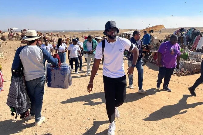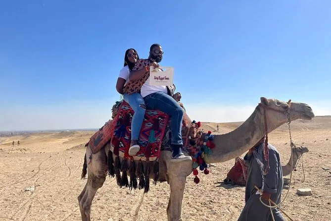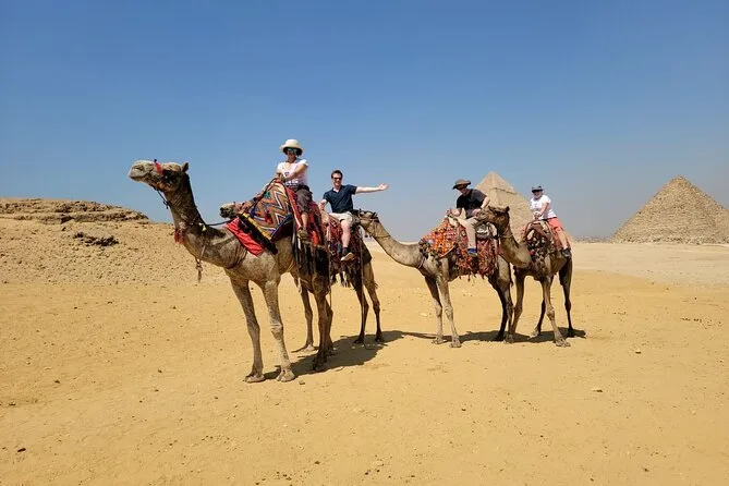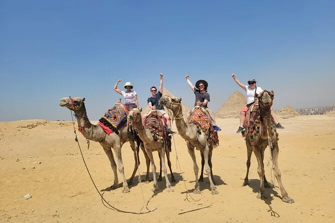 Estarás justo bajo las imponentes pirámides de Giza, podrás montar un camello o un carruaje de caballos por la arena dorada, escucharás historias de un guía local y terminarás con un almuerzo egipcio auténtico—koshary o carnes a la parrilla si prefieres. No es solo ver monumentos, es sentir su historia y disfrutar cada momento.