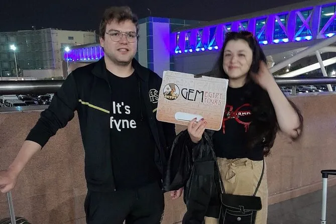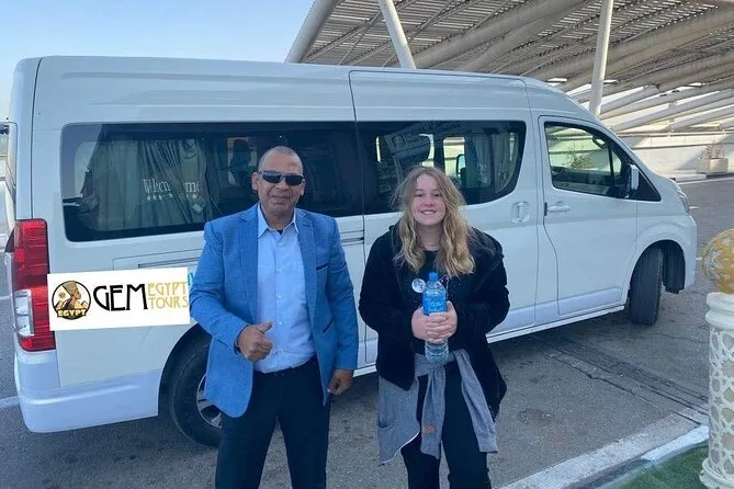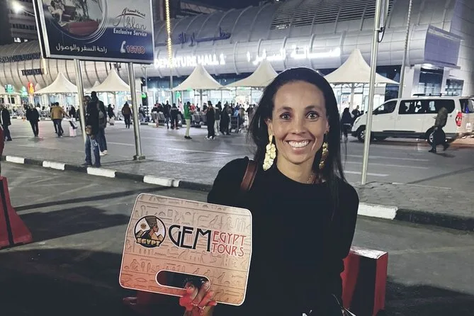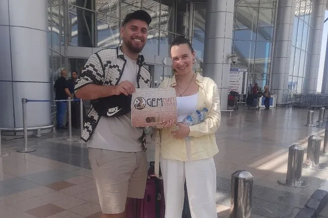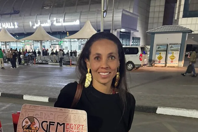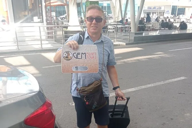 Tu llegada incluye recogida privada en el aeropuerto de El Cairo por un conductor local experimentado que te espera en llegadas con un cartel con tu nombre, te ayuda con el equipaje, te ofrece agua fría para el viaje, garantiza un trayecto cómodo en un vehículo con aire acondicionado y te deja directamente en el hotel que elijas en El Cairo o Giza.