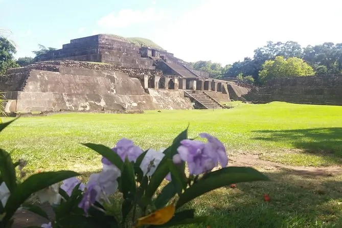 Visitarás varias estructuras, incluida una pirámide de 24 metros de altura en el sitio arqueológico de Tazumal.