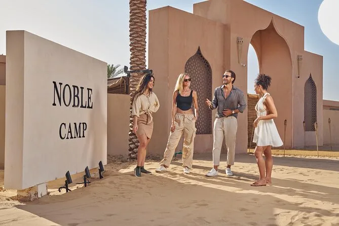 Tu día incluye recogida y regreso en hotel de Dubái en Land Cruiser o Nissan Patrol; aventura guiada en quad por las dunas rojas; dune bashing; sandboarding; entrada a campamento premium con café árabe, dátiles y dulces; paseos en camello; acceso al Souq Al Bazaar; refrescos ilimitados (paquetes con alcohol disponibles); buffet BBQ con opciones vegetarianas; nueve shows en vivo incluyendo espectáculo de fuego; pintura de henna; y todo coordinado por un guía certificado de habla inglesa para volver cómodo al hotel por la noche.