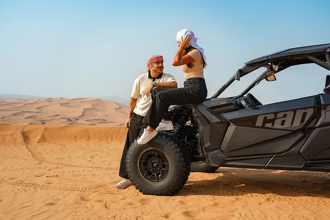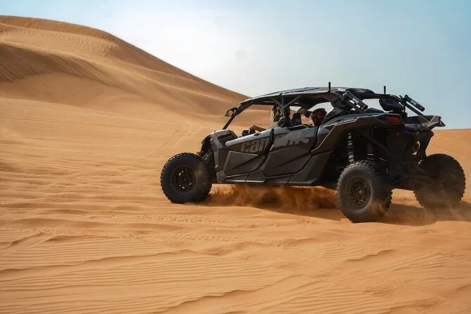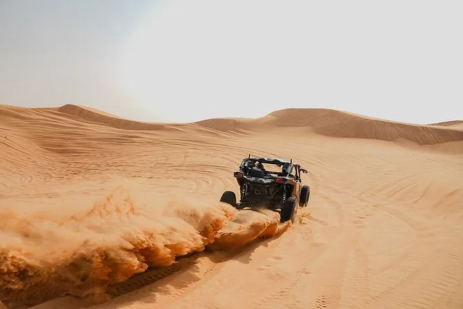 Te lanzas directo a una aventura en buggy Can-Am por las Dunas Rojas de Dubai con un guía local al mando—arena volando, corazón acelerado, risas entre paradas para fotos o simplemente para disfrutar el paisaje. Si añades la noche en campamento, prepárate para sabores ahumados de BBQ, shows en vivo bajo faroles, paseos en camello y momentos de asombro bajo el cielo estrellado del desierto.