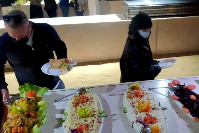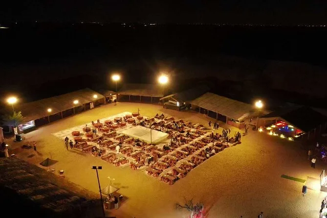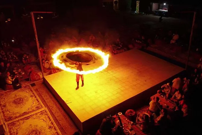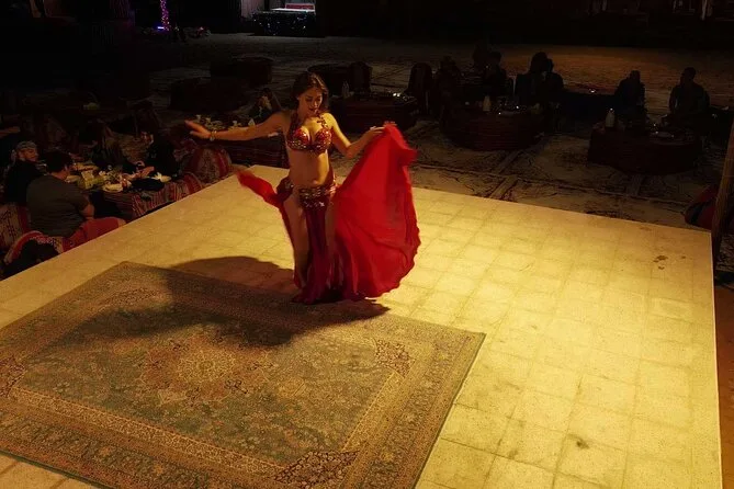 Incluye cena BBQ, shows en vivo (danza del vientre y Tanoura), shisha, tatuajes de henna y paseo en camello.
