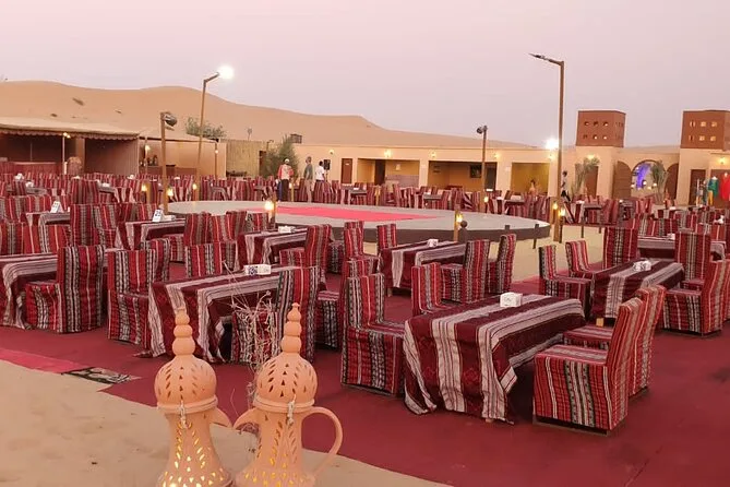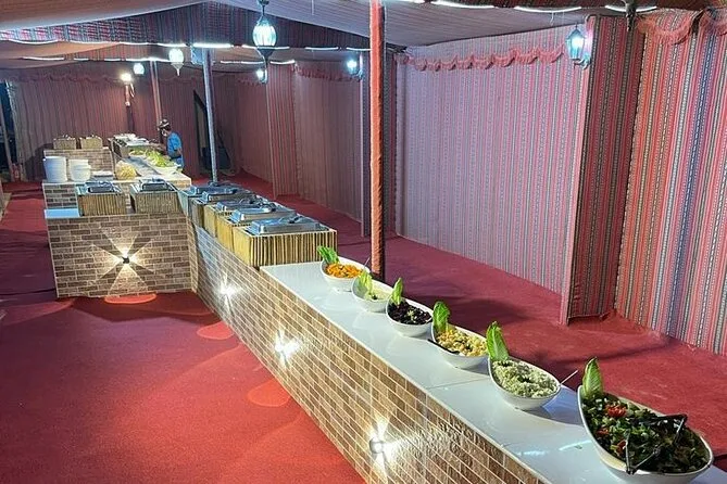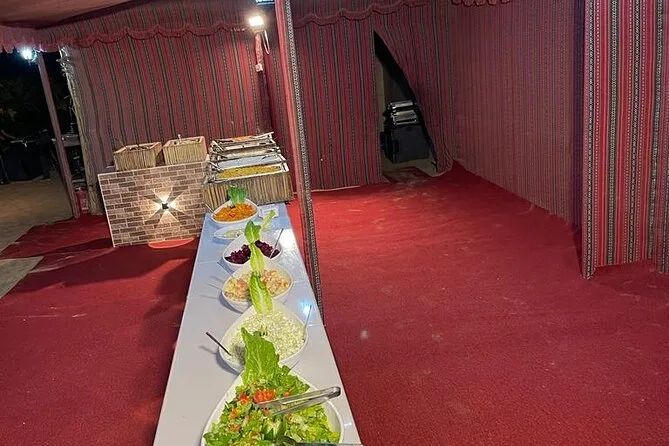 Podrás disfrutar de cena buffet BBQ, shows en vivo (danza del vientre, danza Tanura), pintura de henna, shisha, paseos en camello, fotos con trajes árabes y más.