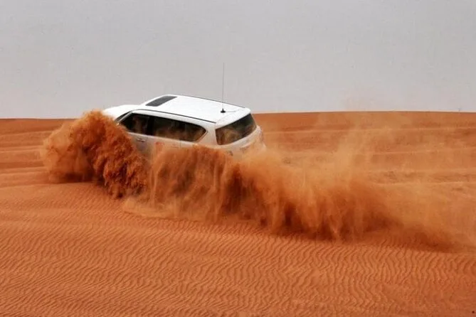 Sentirás la adrenalina al conducir un quad por las dunas rojas de Lahbab en Dubai, y luego agárrate fuerte para el dune bashing con tu guía local. Al caer el sol, relájate en un campamento animado con cena BBQ, henna y shows en vivo. Prepárate para risas, arena en los zapatos y recuerdos que duran más de lo que imaginas.