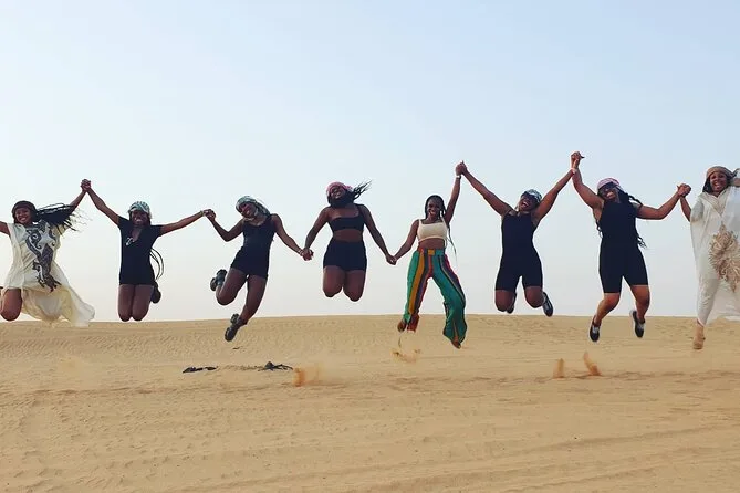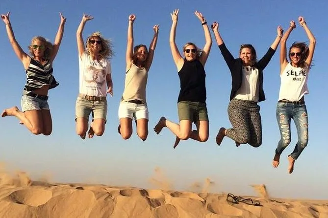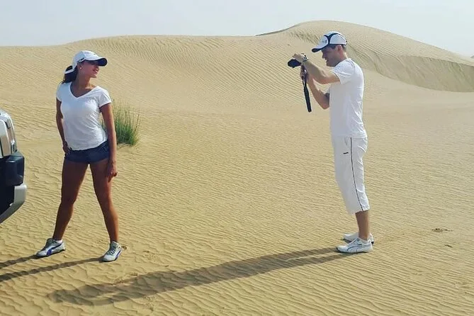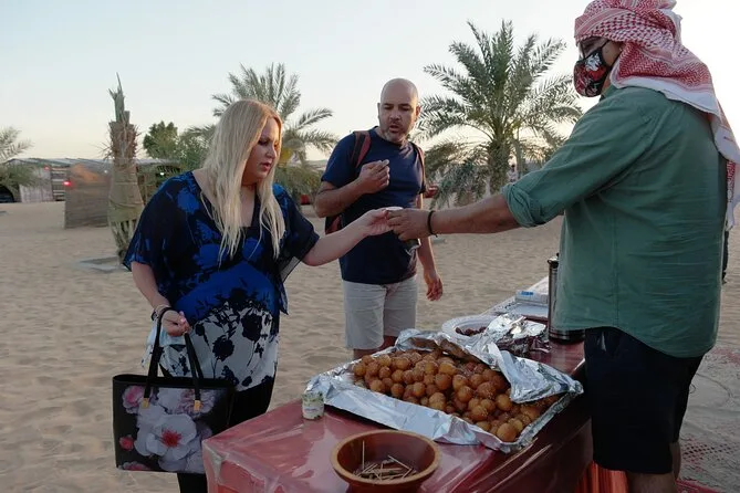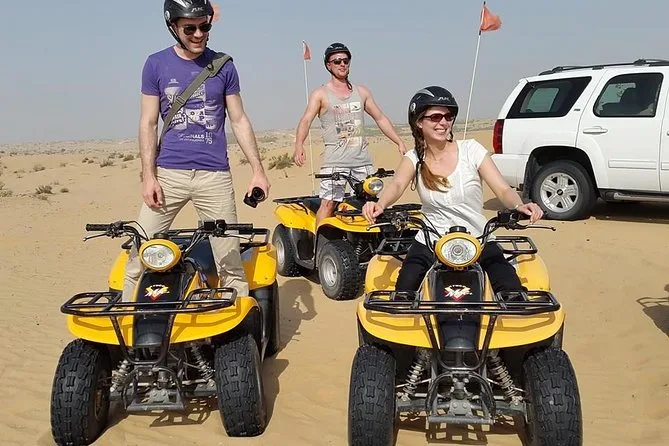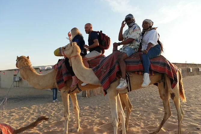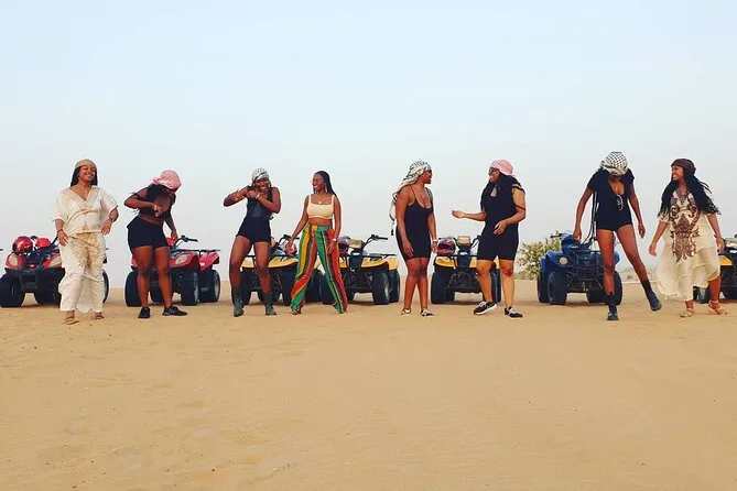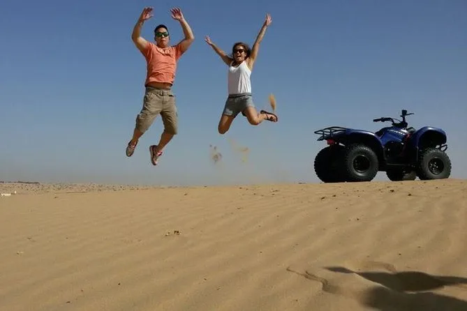 Tu día incluye recogida y regreso en 4x4 con conductor-guía desde hoteles céntricos de Dubái. En el campamento te recibirán con café árabe y dátiles, además de snacks; disfruta de un paseo en quad gratis si tienes 13 años o más; monta en camello; prueba la shisha en la tienda; mira los shows en vivo de danza del vientre y tanoura; hazte un tatuaje de henna si quieres; y luego siéntate a un buffet completo de barbacoa con ensaladas, postres, refrescos y agua antes de regresar a tu hotel.