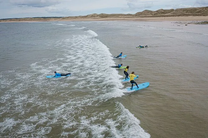 Tu día incluye una clase grupal de surf de dos horas en Dunnet Beach con todo el equipo incluido: neopreno calentito y de calidad, tabla y la guía experta de campeones locales. Solo tienes que venir listo para disfrutar de las refrescantes olas de Escocia.