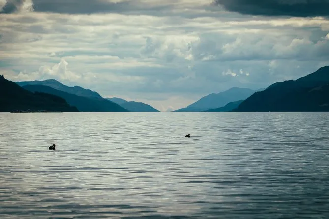 Mallaig fue nuestra parada para comer — un pueblo pesquero pequeño con olores a sal, pescado frito y algo dulce de una panadería que no pude probar. Intenté pedir marisco, pero mi acento debió confundir a la camarera; se rió y me ayudó igual. Después, de vuelta a la carretera rumbo a Fort Augustus, donde puedes caminar justo a la orilla del lago Ness. El agua parecía casi negra bajo las nubes densas — no daba miedo, pero sí una sensación antigua. Recuerdo que me quedé un rato más parado que los demás.