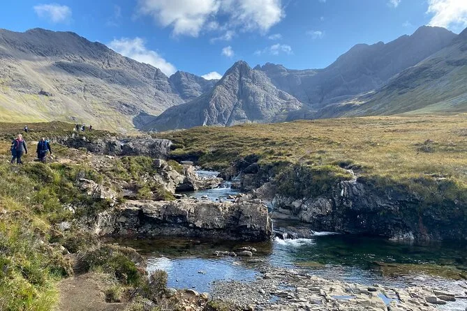 Viaja desde Inverness por valles de las Highlands y la orilla del Lago Ness hasta los paisajes más salvajes de la Isla de Skye: fotos en el Castillo de Eilean Donan, almuerzo en el puerto pastel de Portree, los acantilados ventosos de Kilt Rock y una caminata hasta las cristalinas Fairy Pools con un guía local que te contará historias todo el día. Prepárate para risas, cambios de clima constantes y momentos que recordarás para siempre.