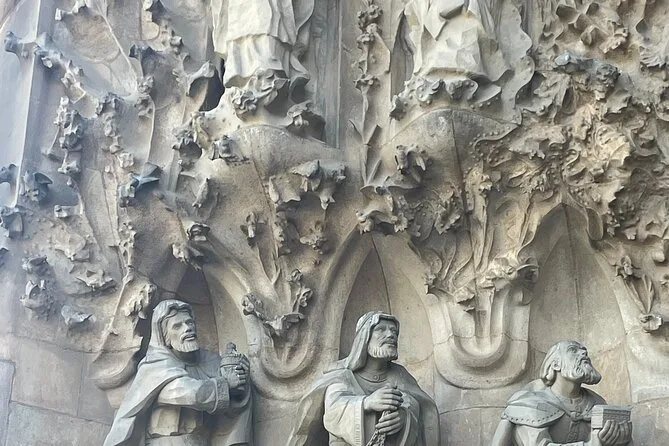 Aún lo veo cuando cierro los ojos: el primer instante que salimos de la calle y nos plantamos frente a la fachada del Nacimiento de la Sagrada Familia. Hay tanto detalle en esas piedras talladas que me perdí escuchando a nuestra guía Marta señalar pequeñas curiosidades: una tortuga aquí, racimos de uvas allá, todos esos símbolos escondidos en la piedra. Bromeaba sobre cómo los locales han visto crecer este lugar por generaciones — “Mi abuela decía que nunca se acabaría,” se reía, y parece que sigue siendo cierto.