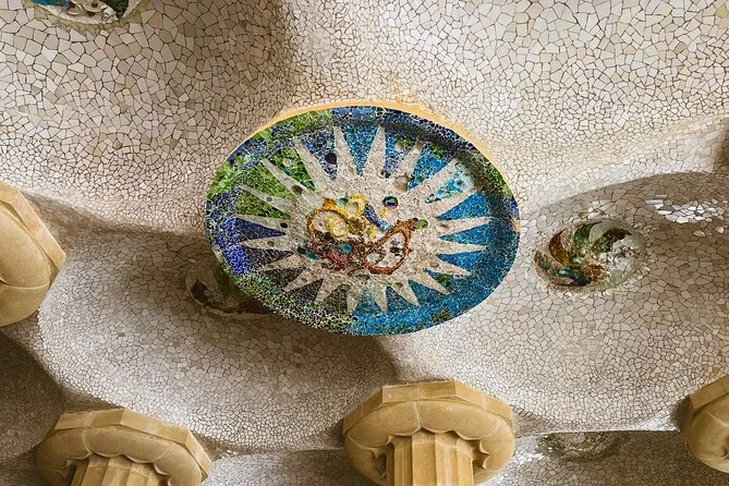 Marta nos señaló detalles que jamás habría notado sola — como que cada azulejo de la terraza principal estaba colocado a mano, o que el famoso dragón no es solo decoración, sino un guiño al folclore catalán. Nos dejó disfrutar un rato en la Sala Hipóstila (la de las “100 columnas”, aunque en realidad son 86 — nos guiñó un ojo al contarlo), y pasé los dedos por una columna solo porque pude. Se sentía fresca y extrañamente suave para ser piedra. No esperaba sentirme tan pequeña bajo tanto color y luz girando a mi alrededor.