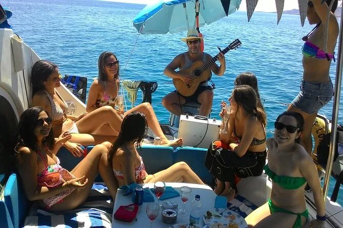 Después de anclar cerca de la playa de La Cantarriján, algunos nos animamos a remar en kayak hacia unas cuevas que Andy llamó “los escondites de los contrabandistas.” El sol iba cambiando detrás de nubes finas—un momento cegaba reflejándose en el agua, al siguiente se ponía suave. Me quedé mirando los acantilados un rato, pensando en cuánta gente habrá observado esas mismas rocas a lo largo de los siglos. Algunos se echaron una siesta a la sombra; otros seguían picando del plato de quesos y sirviéndose más vino (aquí barra libre es barra libre). No había prisa para nada, salvo quizá para darse otro chapuzón antes de volver.