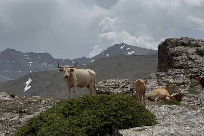 Recorrerás senderos antiguos en 4x4 desde Granada hasta la alta Sierra Nevada, pasando por miradores secretos y escuchando historias de tu guía local. A 2500 metros harás una parada en un refugio para tomar algo y disfrutar de tiempo libre — ya sea para pasear o simplemente respirar ese aire salvaje, tú decides.