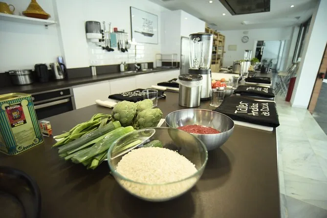 Tu tarde incluye todos los ingredientes y utensilios para cada plato, sangría casera durante la clase, hasta dos bebidas con la cena—vino español, cerveza o refrescos—y una cena completa con recetas clásicas andaluzas que prepararás junto al chef antes de salir a la noche sevillana.
