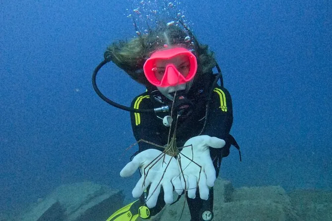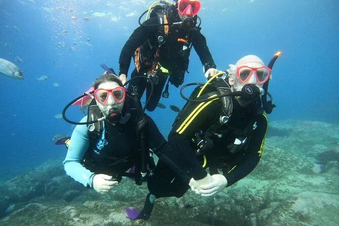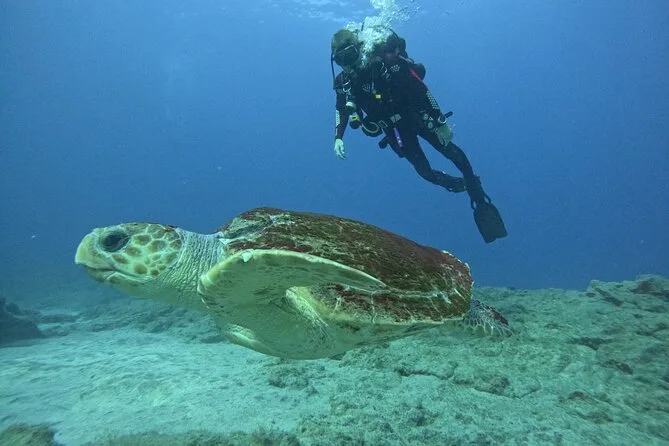 Tu día incluye una explicación detallada de seguridad en el centro de buceo de Tenerife con instructores PADI; un paseo en barco de 10 a 15 minutos a los mejores puntos de inmersión; uso completo de neoprenos y equipo de buceo y snorkel; 25-30 minutos de buceo con instructor y media hora de snorkel cerca de zonas con tortugas; agua embotellada al terminar; seguro durante toda la actividad; y acceso a duchas en el centro antes de regresar o seguir explorando la ciudad.