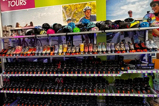 Tu alquiler incluye patines, casco, protectores para muñecas, rodillas y codos, botella de agua y todos los impuestos locales. Solo llega listo para patinar.