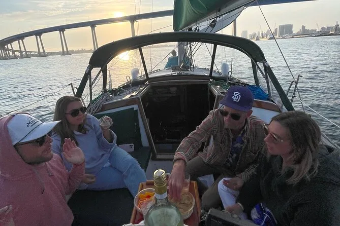 En un momento pasamos cerca de Point Loma, donde se puede ver el Monumento Nacional Cabrillo si sabes dónde mirar (yo no lo sabía hasta que nuestro guía me lo mostró). El sol bajaba rápido—el cielo pintado de rosa y naranja—y pensé que debería haber traído un suéter, pero no me importó porque se sentía bien ese fresco. Ver San Diego desde esta perspectiva lo hace parecer nuevo otra vez. Hablamos de volver para una excursión de día o explorar Coronado después de atracar, pero la verdad sigo recordando esa vista mientras navegábamos de regreso a Shelter Island en la penumbra.
