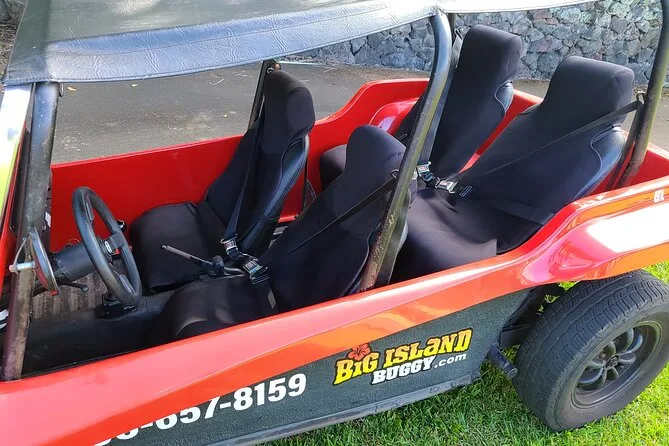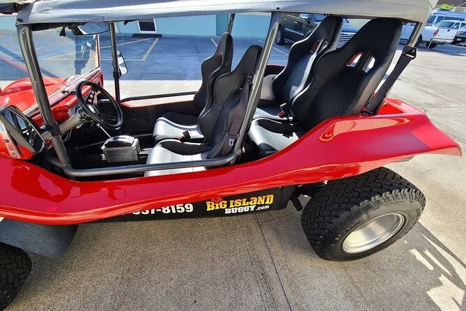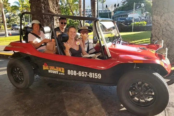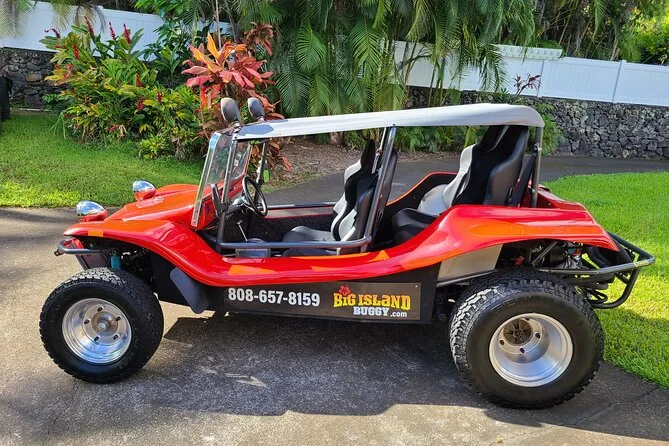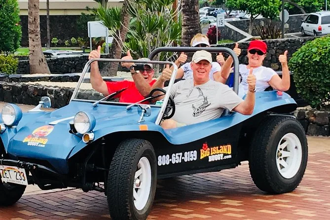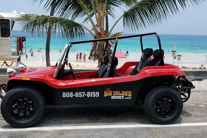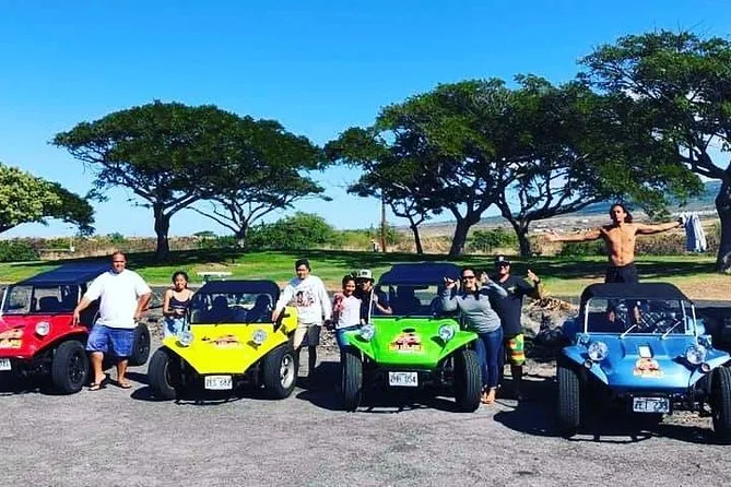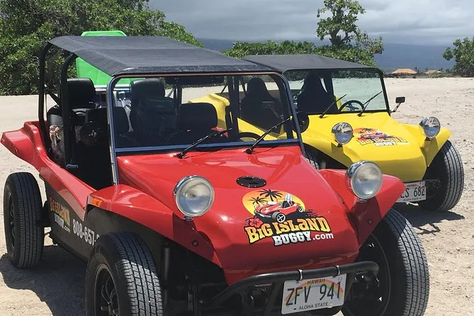 Tu día incluye un buggy VW estilo Manx legal para carretera (manual o automático), mapas con recomendaciones locales para paradas en Big Island, y uso gratuito de sillas, toallas, sombrilla y nevera si lo pides con antelación. Solo elige tu hora de recogida y disfruta de todo lo necesario para explorar a tu ritmo.