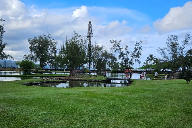 El tour es de día completo con varias paradas en Hilo, incluyendo volcanes, cascadas, playas y mercados.