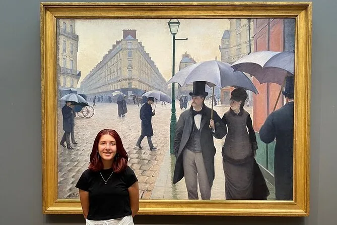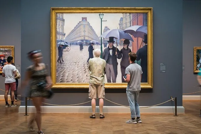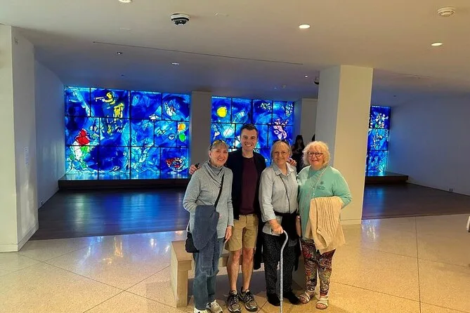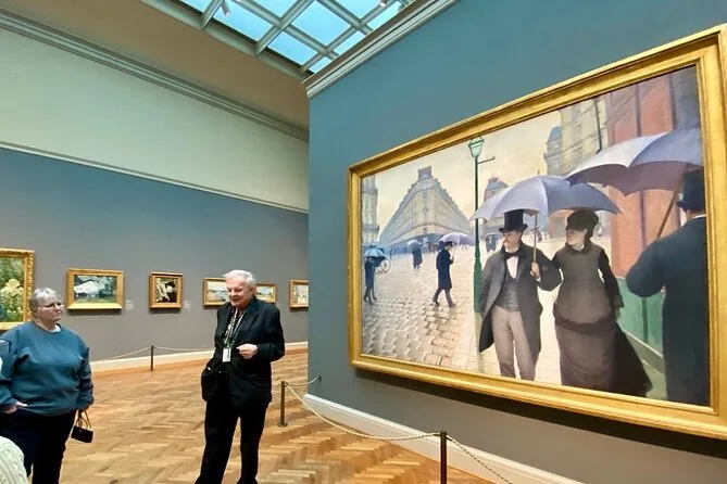 No esperaba interesarme mucho por Picasso o Hopper, pero escuchar cómo Nighthawks llegó aquí (y que nadie sabe exactamente qué hora de la noche muestra) me hizo quedarme más tiempo del que pensaba. Hay una sala con las Ventanas América de Chagall donde el vidrio azul proyecta una luz rara sobre tus zapatos — bastante relajante, en realidad. Nuestro grupo se quedó en silencio sin que nadie lo pidiera. También: si intentas pronunciar “Caillebotte” bien y fallas, no estás solo — Li se rió cuando lo intenté (culpo al jet lag).