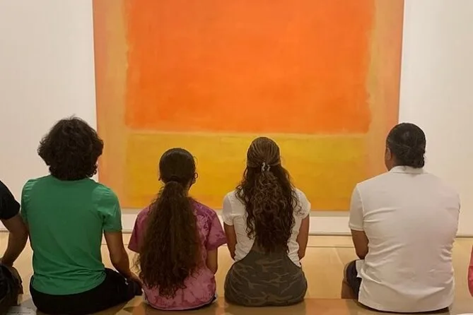 Lo de saltarse la fila fue un alivio total porque ya había bastante gente afuera, y eso que apenas pasaban las 10 de la mañana. Dentro, todo estaba más tranquilo de lo que esperaba — un silencio casi reverente, salvo por las zapatillas de los niños chirriando en el mármol. La primera parada fue frente a Domingo en La Grande Jatte de Seurat; Marissa nos pidió mirar los puntitos de cerca y luego alejarnos para ver cómo se fundían. Suena simple pero… no sé, verlo en persona impacta distinto. Alguien detrás susurró “es más grande de lo que imaginaba”. Y sí, totalmente.”