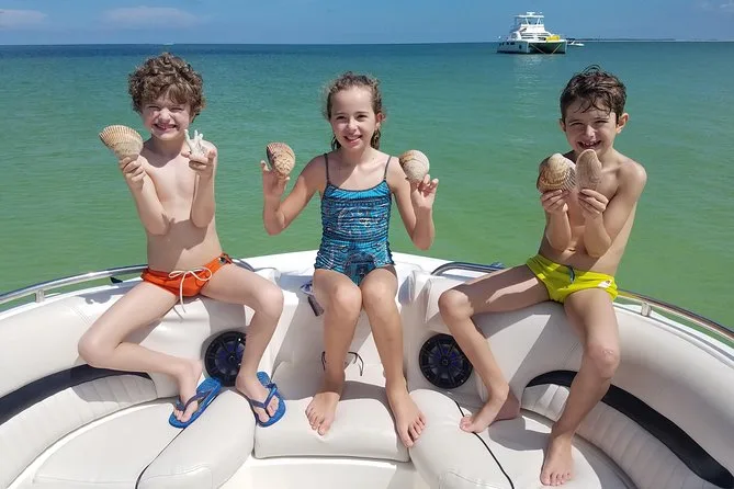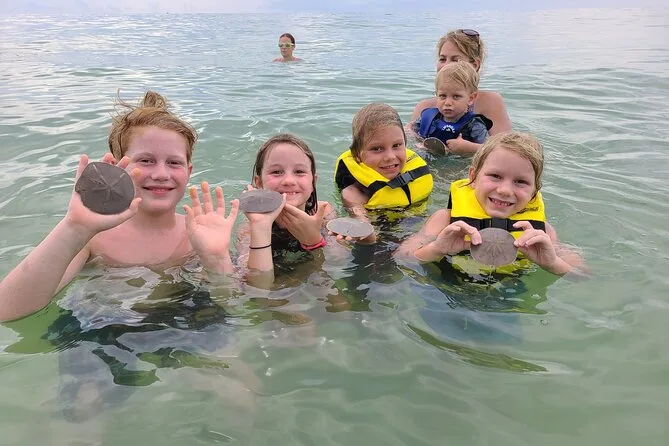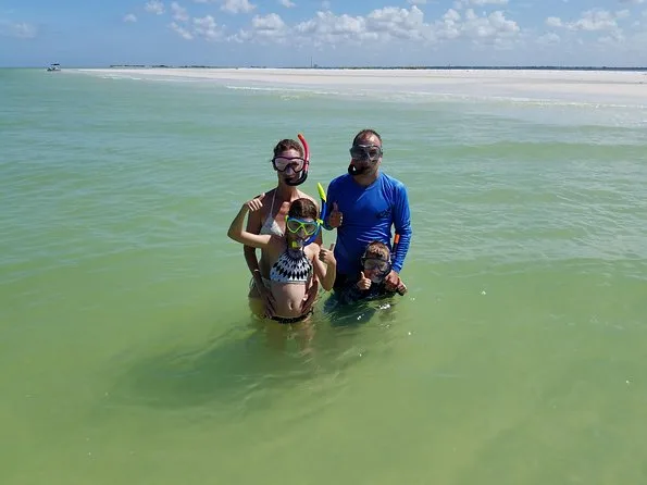 Incluye hielera con hielo y agua embotellada, colchonetas Big Joe para nadar, bolsas de malla para recoger conchas, chalecos salvavidas, combustible, equipo de seguridad y la guía de un capitán local profesional.
