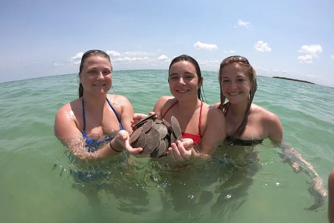 Tu día incluye recogida y regreso en un punto cercano a Clearwater Beach, todo el combustible cubierto por tu capitán-guía (que conoce estas aguas al detalle), agua embotellada fría en nevera con hielo, uso de flotadores para las paradas de natación, bolsas de malla para recoger conchas en Caladesi o Honeymoon, y todo el equipo de seguridad para que solo te relajes y disfrutes.