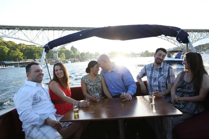 Tu paseo de dos horas incluye un barco cómodo con baños, narración de un guía local mientras recorres Lake Union pasando por lugares como Gas Works Park y la Space Needle, además de la opción de llevar tus propios snacks o bebidas, ya sea con lluvia o sol.