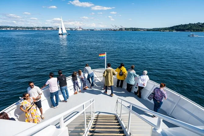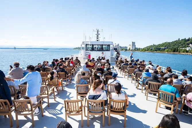 Tu paseo de una hora incluye narración en vivo por un guía local mientras exploras Elliott Bay en barco, con opciones de asientos dentro y fuera para cualquier clima; baños a bordo para que no tengas que preocuparte por el momento del café; check-in sencillo llegando 30 minutos antes en el Pier 59, cerca del centro de Seattle.