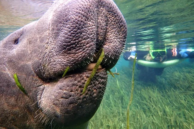 Tu día incluye todo el equipo de snorkel necesario (traje de neopreno, máscara, flotadores), agua embotellada a bordo, guía local y un fotógrafo experto en el agua que captura tu nado con manatíes salvajes antes de regresar juntos a la orilla.