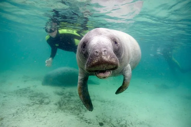 Te sumergirás en las claras aguas de Crystal River con un grupo pequeño y un guía local, flotando tranquilo mientras los manatíes se acercan a su ritmo. Incluye traje de neopreno completo, bebidas calientes después del baño, toallas y fotos espontáneas bajo el agua—todo a tu propio paso. Es tranquilo, a veces divertido, siempre auténtico—y te deja con una sensación de ligereza única.