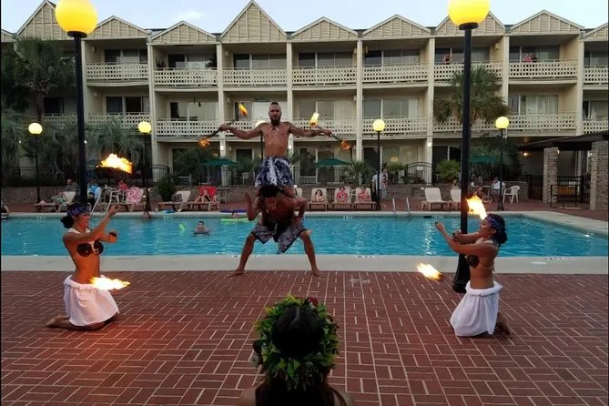 Tu noche incluye la entrada a Polynesian Fire en Daytona Beach con un tradicional saludo con lei al llegar, acceso a un buffet completo (con té y agua), actuaciones en vivo de músicos y bailarines durante la cena, y el gran final con los campeones mundiales de cuchillos de fuego samoanos antes de volver a la noche florida.