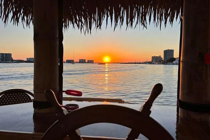 Flotarás por la bahía de Destin en un barco estilo tiki mientras el sol se pone a tu alrededor—se recomienda traer tus propias bebidas, con cooler y vasos listos a bordo. Música relajada, caras amigables (incluyendo a tu capitán local) y mucho tiempo para fotos o simplemente disfrutar el aire salado con tu bebida favorita en mano.