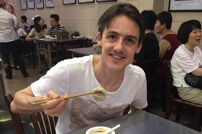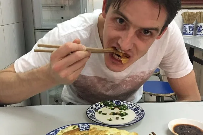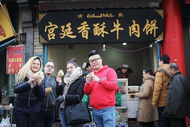 Intenté decir “jianbingguozi” cuando paramos para probar esos crujientes panqueques chinos; Li se rió de mi acento pero me pasó uno igual. El huevo aún estaba tibio y la salsa me quedó pegada en los dedos. Luego vino el roujiamo, la hamburguesa china de cerdo, tan jugosa que tuve que limpiarme la barbilla después de cada mordisco. En una pequeña tienda de dumplings, un anciano doblaba la masa tan rápido que parecía magia. Me sonrió cuando pedí aceite de chile (“no mucho,” me advirtió). Por un momento todo el ruido se apagó mientras lo probaba: picante, tierno, perfecto.