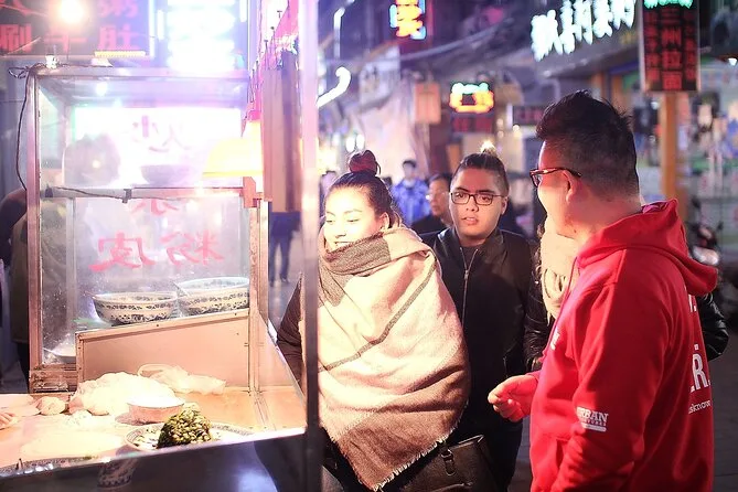 Probarás jianbingguozi (panqueque chino), roujiamo (hamburguesa de cerdo), rollo de arroz cantonés, pollo frito salado taiwanés, dumplings hechos a mano y agua embotellada.
