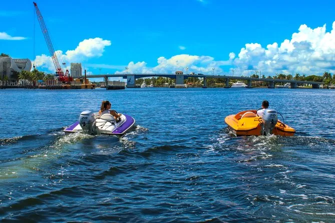 Tu día incluye el uso completo de una mini lancha para hasta dos personas (con gasolina incluida) y la instrucción amable del equipo local antes de salir a explorar los canales de Fort Lauderdale. Solo revisa si necesitas licencia y disfruta navegando a tu ritmo antes de regresar a Las Olas Paddle Boards.