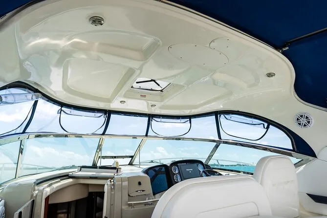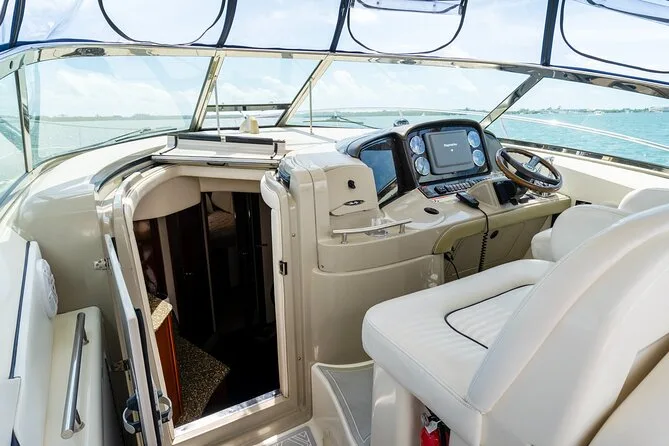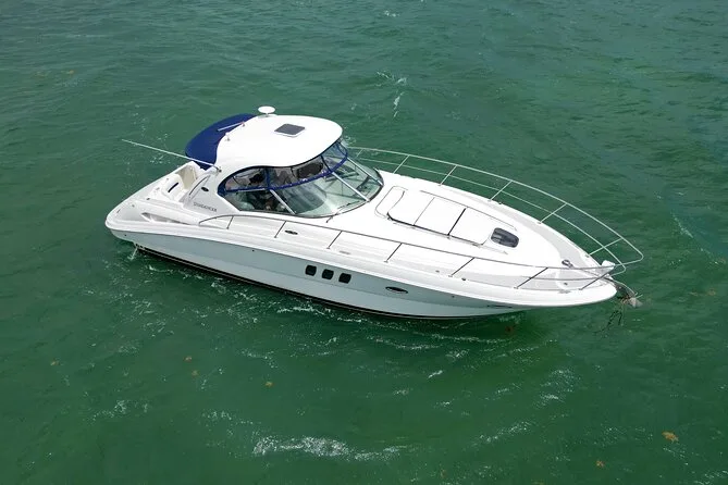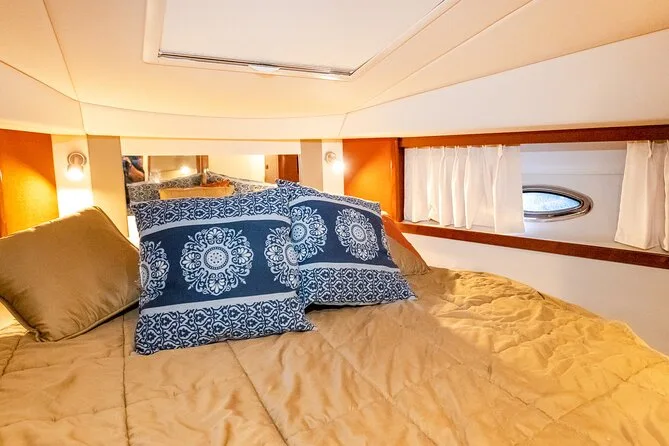 Tu día incluye el uso del yate Sundancer 40 con asientos a la sombra y acceso a la cubierta solar, combustible incluido, hieleras con hielo y agua embotellada (puedes traer tus bebidas), tasas de atraque cubiertas y acceso a colchonetas acuáticas para alquileres de 4 horas o más, para que nades o descanses a gusto antes de volver juntos a la orilla.