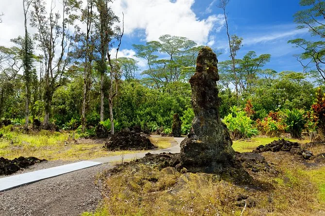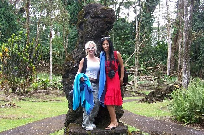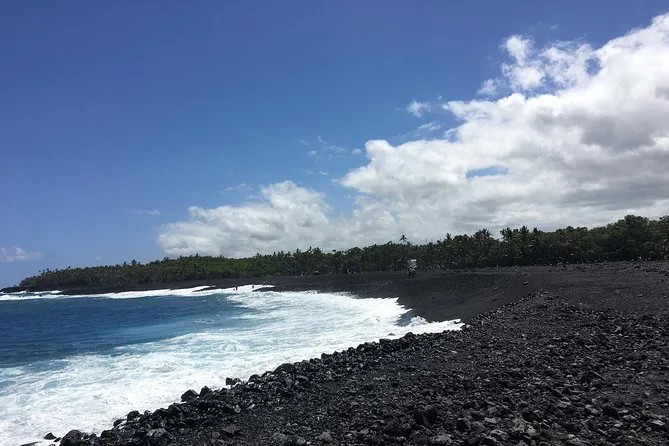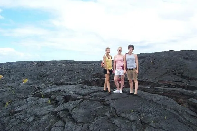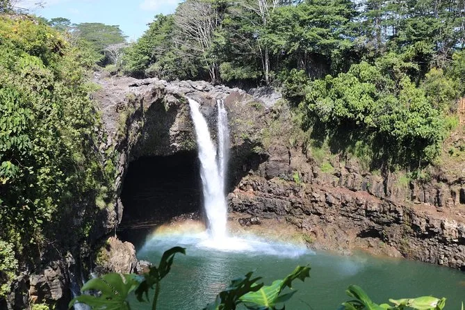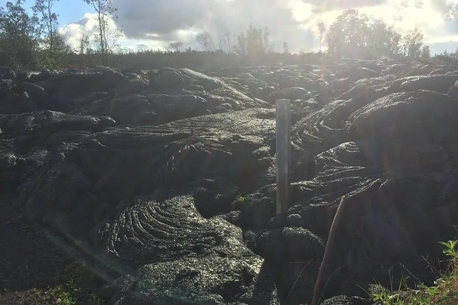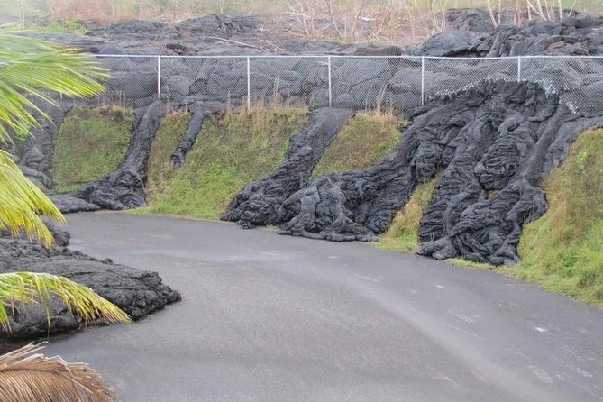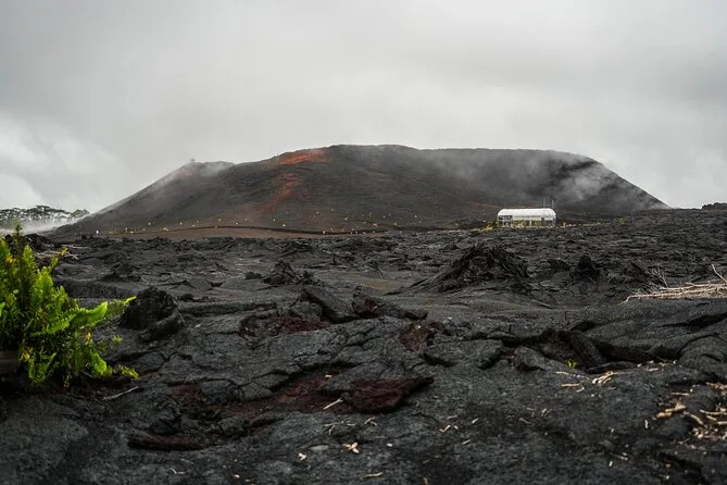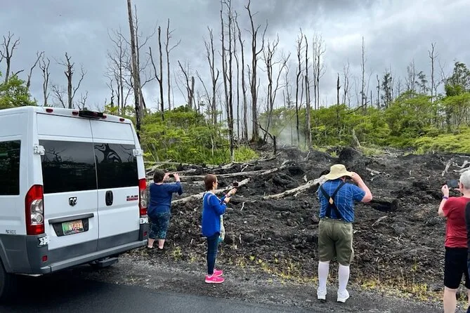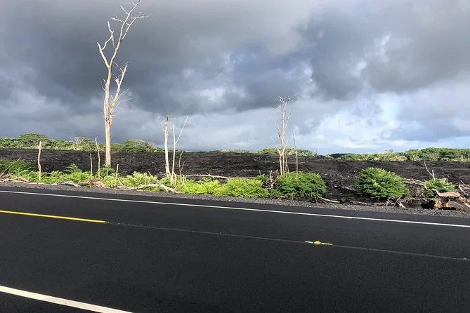 Visitarás los Jardines Liliʻuokalani, Rainbow Falls, el Parque Estatal de Cuevas Kaumana (tubos de lava), el pueblo de Pahoa, el sendero de árboles de lava, zonas afectadas por erupciones recientes y la playa de arena negra más nueva de Hawái.