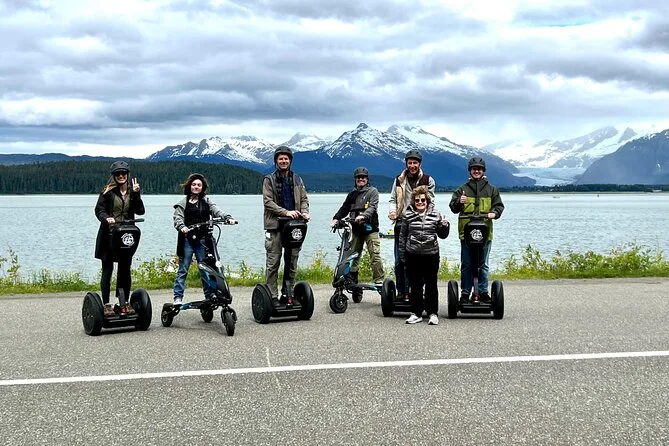 Tu día incluye el uso de un Segway personal (o Pon’e eléctrico para niños), casco de seguridad, radio manos libres para escuchar datos mientras recorres, agua embotellada y snacks en una playa apartada dentro del Bosque Nacional Tongass. Hay ponchos para lluvia si los necesitas—solo llega listo para rodar por la costa de Juneau con tu guía local al frente.