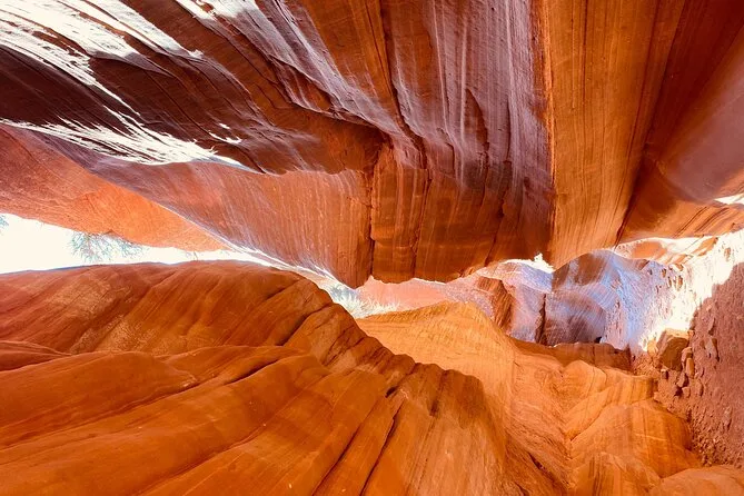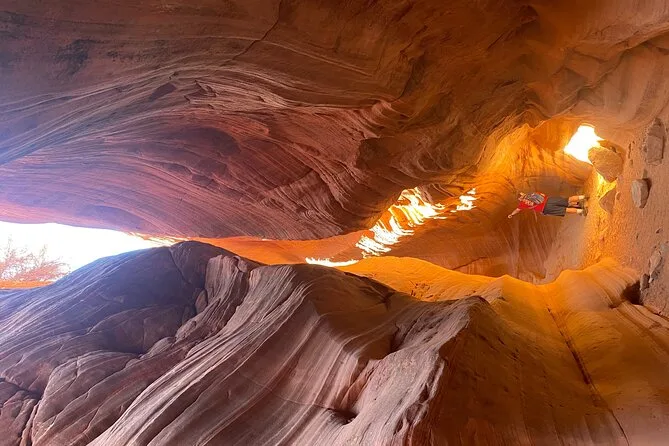 Tu día incluye un paseo off-road desde Kanab con un guía local experto que comparte historias durante el camino; agua y snacks están incluidos durante la caminata en grupo pequeño por Peek-a-Boo Slot Canyon antes de regresar juntos tras explorar este lugar único.