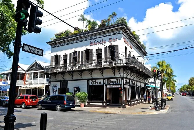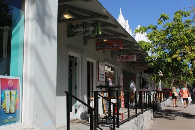 Al llegar a Key West, se siente un cambio de ambiente inmediato. Gallos paseando, aire salado y ese aroma a protector solar mezclado con concha frita que viene de Duval Street. Tuvimos dos horas para explorar. Entré a Kino Sandals para echar un vistazo (los locales los recomiendan mucho), y luego me compré un pie de lima frío en un palo a un vendedor callejero. Si te gusta ver gente, Mallory Square es el lugar — artistas por todos lados y quizás hasta veas a alguien haciendo malabares con fuego.
