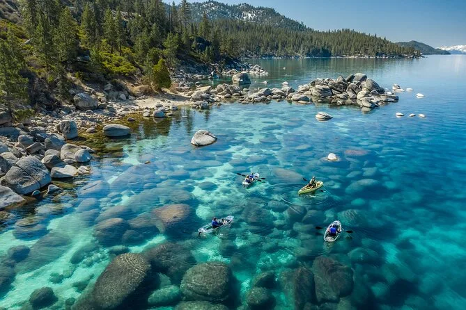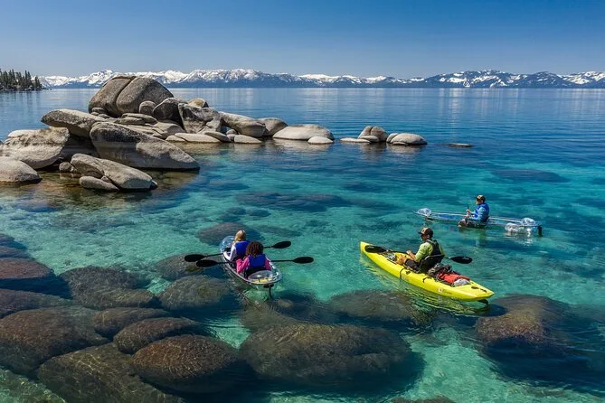 Rema por las aguas más claras de Lake Tahoe en un kayak transparente, viendo rocas y peces deslizarse bajo tus pies mientras te acercas a Bonsai Rock. Con traslado desde Incline Village, guía local con historias y todo el equipo incluido, vivirás un día donde te sentirás parte del lago, no solo flotando sobre él.