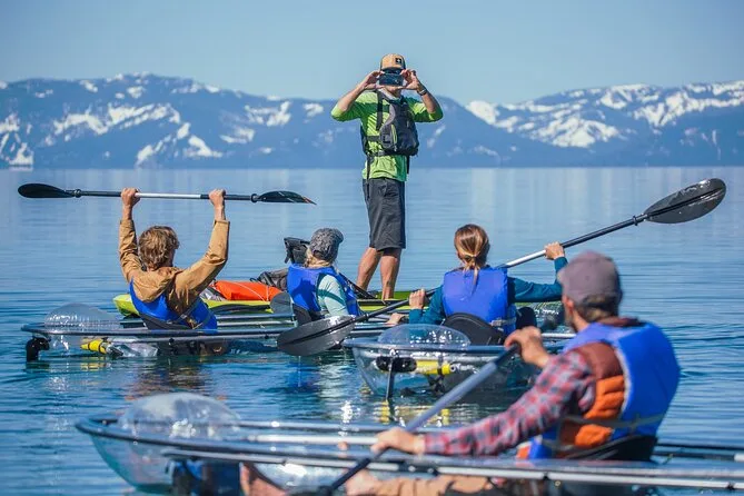 Tu día incluye traslado privado desde Incline Village, todas las tarifas de acceso y estacionamiento cubiertas, uso de kayak transparente con remos y chalecos salvavidas aprobados por la Guardia Costera, agua embotellada para cada participante, transporte en shuttle con aire acondicionado ida y vuelta, para que solo te preocupes por remar y disfrutar.